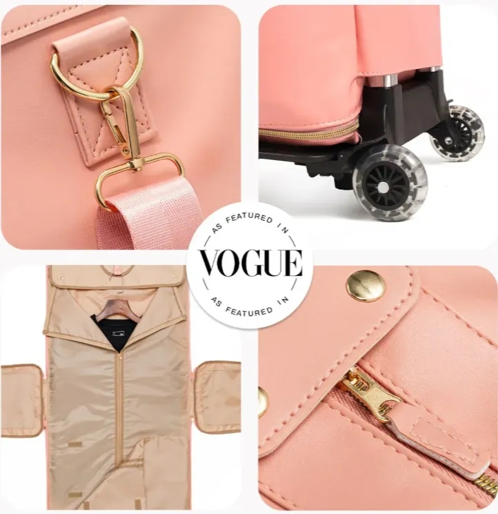 This bag is a stunner! The shade of pink is divine and perfect for my suits. It looks super classy and has just the right amount of space for my travel essentials.